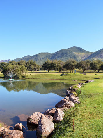 Originally designed by renowned course architect Bob Grimsdell, the layout was later redesigned by legendary golf professionals Peter Matkovich and Dale Hayes. The result is a thoughtfully crafted 9-hole course with 18 tee boxes, offering a full 18-hole challenge with strategic variety. The course is easy to walk, and the tranquil Rooikuil stream meanders through several holes, enhancing both the challenge and the natural beauty of your round.